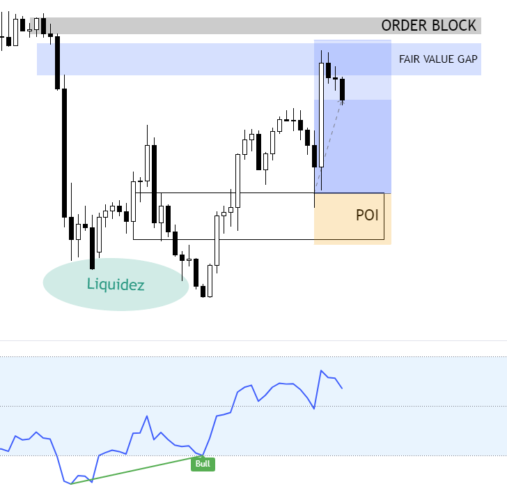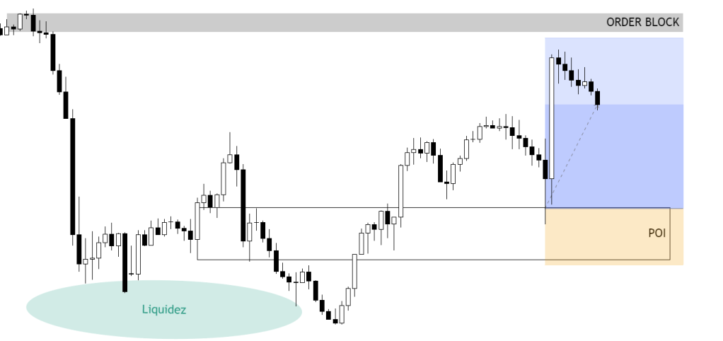 - Identifica rupturas de estructura (Break of Structure, BOS): Busca cambios clave en la estructura del mercado.