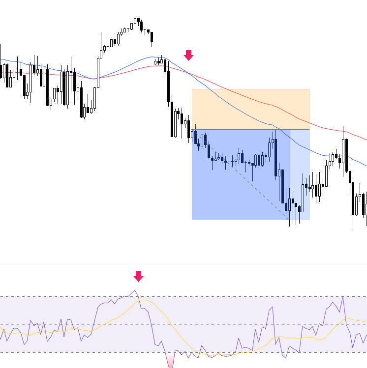 Ejemplo: Si detectas un cruce de medias móviles a la baja y el RSI confirma un momentum negativo, podrías considerar una entrada.